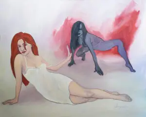I first experience dreams, then translate them onto canvas – analyzing each dream as I paint. This process uncovers deeper, unconscious parts of myself and allows for genuine transformation.